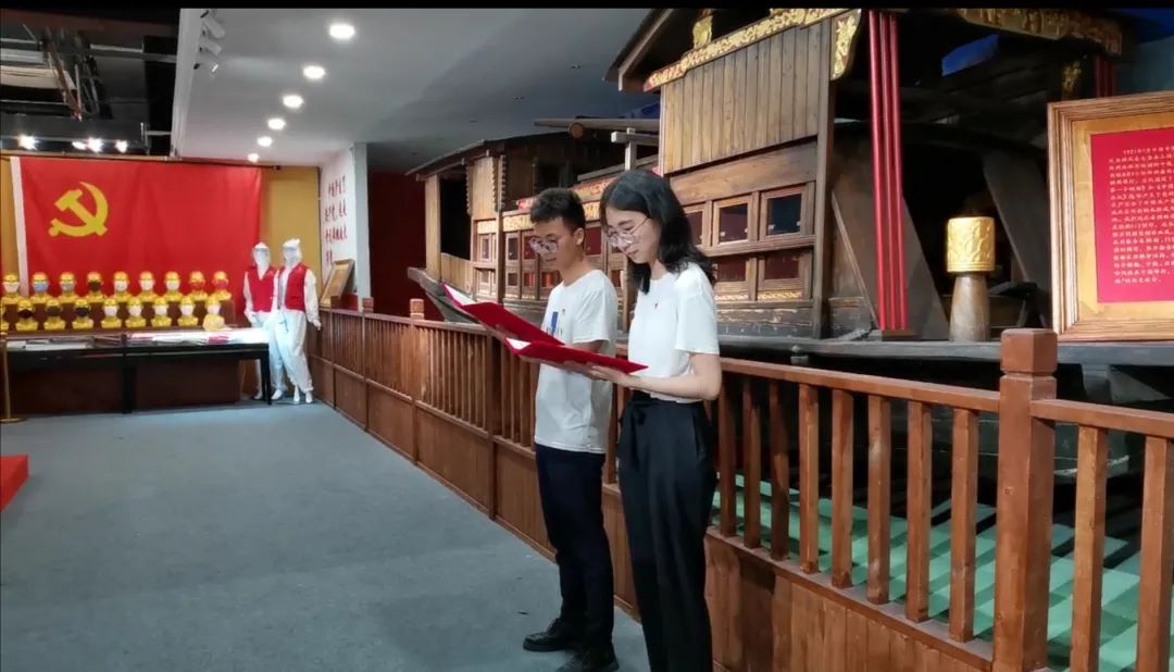 在“日曜东方”利华馆的宣誓墙前,全体党员们庄严宣誓,重温入党誓词,铮铮誓言,铿锵有力,明示拳拳红心。展馆红船前组织2位同志朗诵《红船,从南湖起航》,其他党员认真聆听革命红船故事。